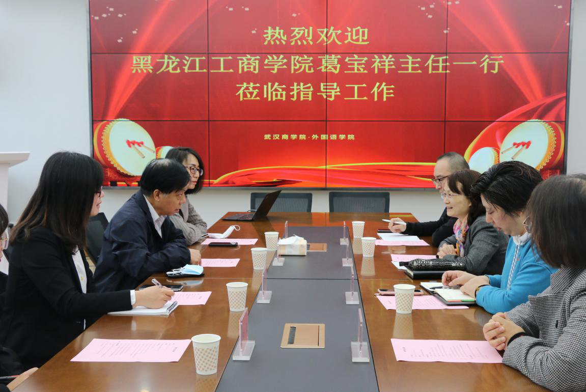 2021年4月12日,黑龙江工商公司外语系主任葛宝祥一行四人莅临公司就商务英语专业建设及实验(训)室建设进行调研。球速体育经理李萍、商务英语教研室主任杨雪、教务科科长钟敏、实训室负责人郭昊参加了此次交流。