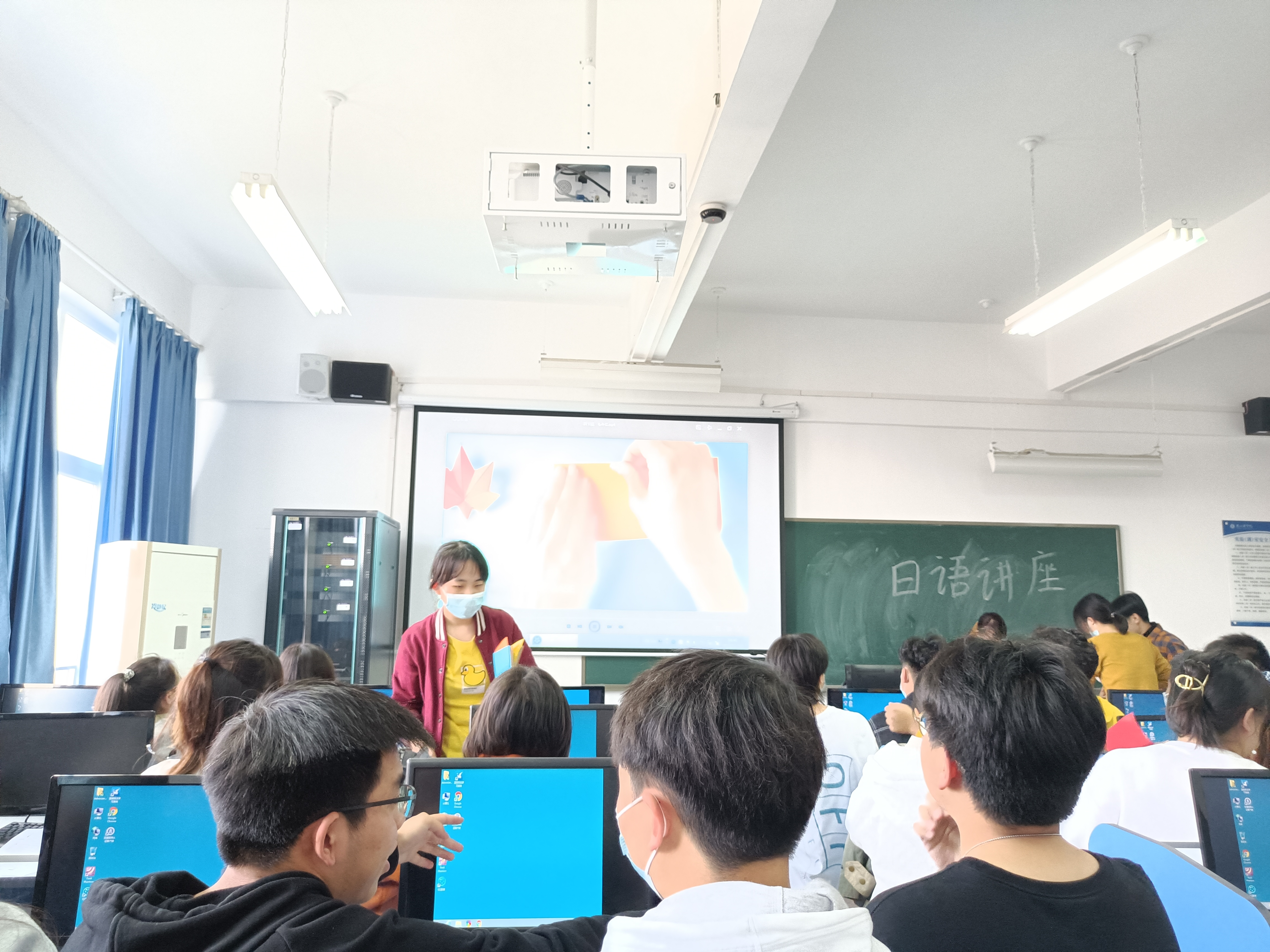 讲座期间,大场明美老师以时间顺序为切入点,随四季变化,从一年开头到结束,逐步引出日本文化习惯,并将其与中国文化进行对比,让员工更清楚理解认识到日本文化的魅力。同时,大场明美老师还给每位同学发放折纸,并耐心地教同学们折枫叶,各位同学在DIY的快乐中学习了日本文化。